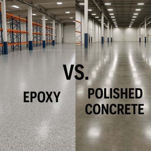 Polished concrete offers a raw, industrial look. Epoxy provides a broader range of finishes and design freedom.