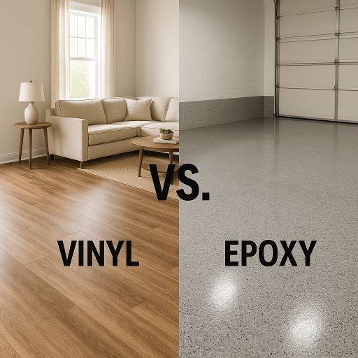 Vinyl is faster and simpler to install DIY. Epoxy requires more prep and professional application.